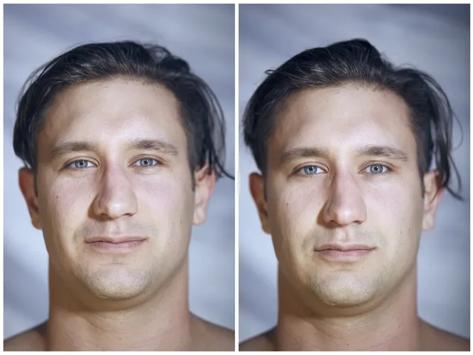A photographer had people pose for their picture with their clothes on and off for a striking side-by-side series
