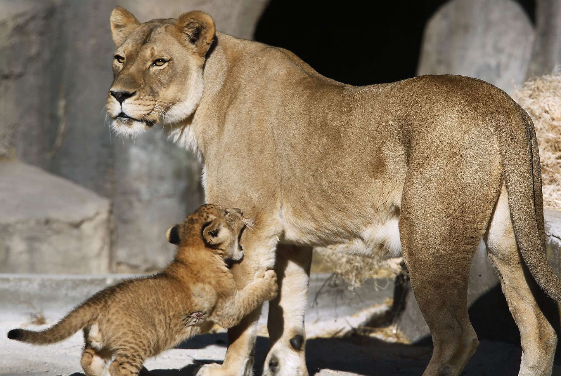 S.F. Zoo introduces 2-month-old male lion cub with pride