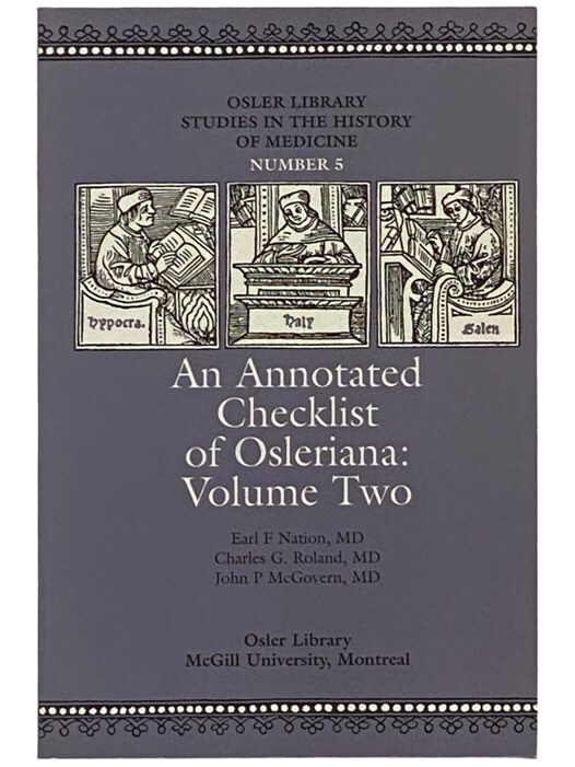 EARL NATION, M. AN UP-DATED CHECKLIST OF OSLERIANA. NATION, EARL, F., M.D.. Pasadena, CA: 1986. Spiral bound. Near fine in spiral bound wraps. ; SCARCE. No ...