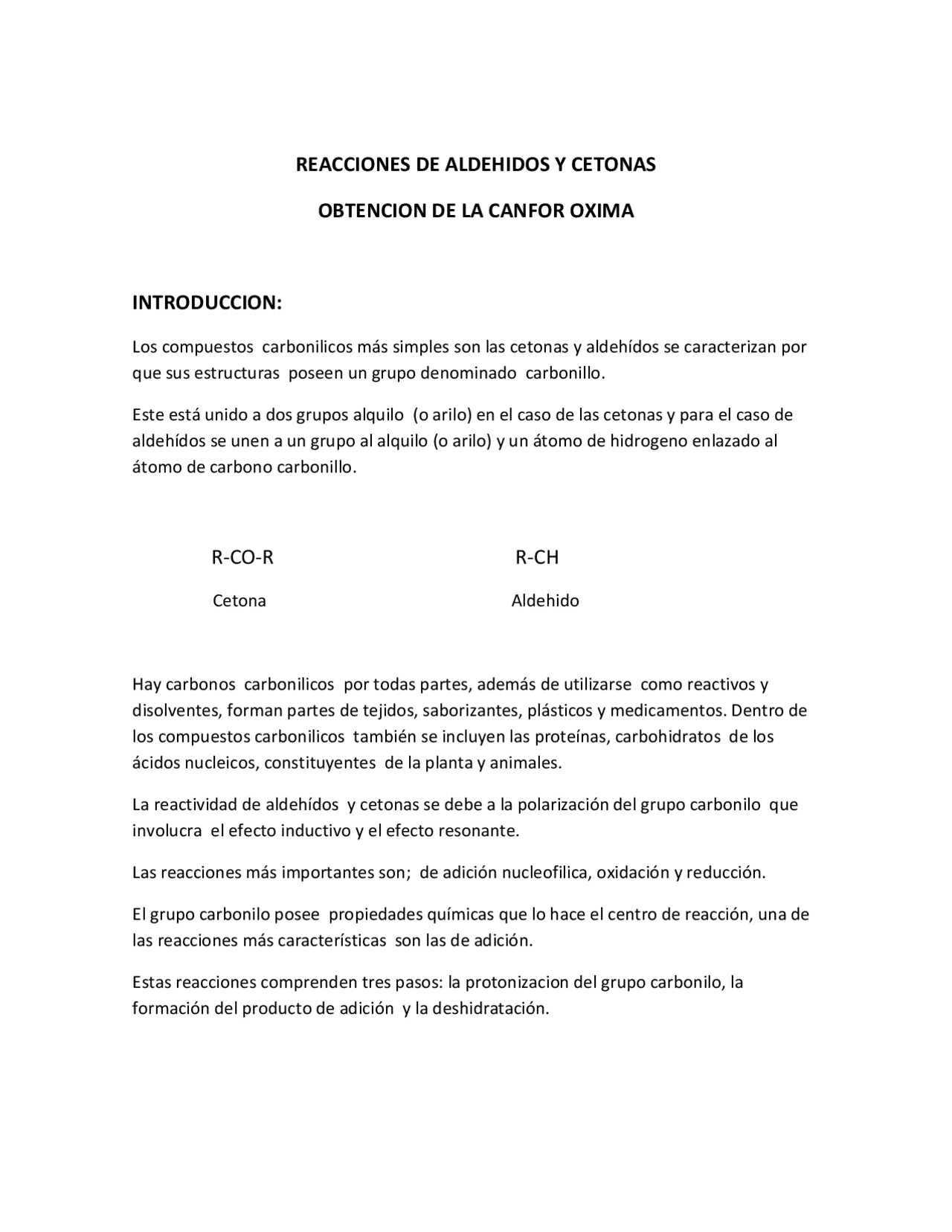 Canforoxima Laboratorio 6 | Diapositivas de Química - Docsity