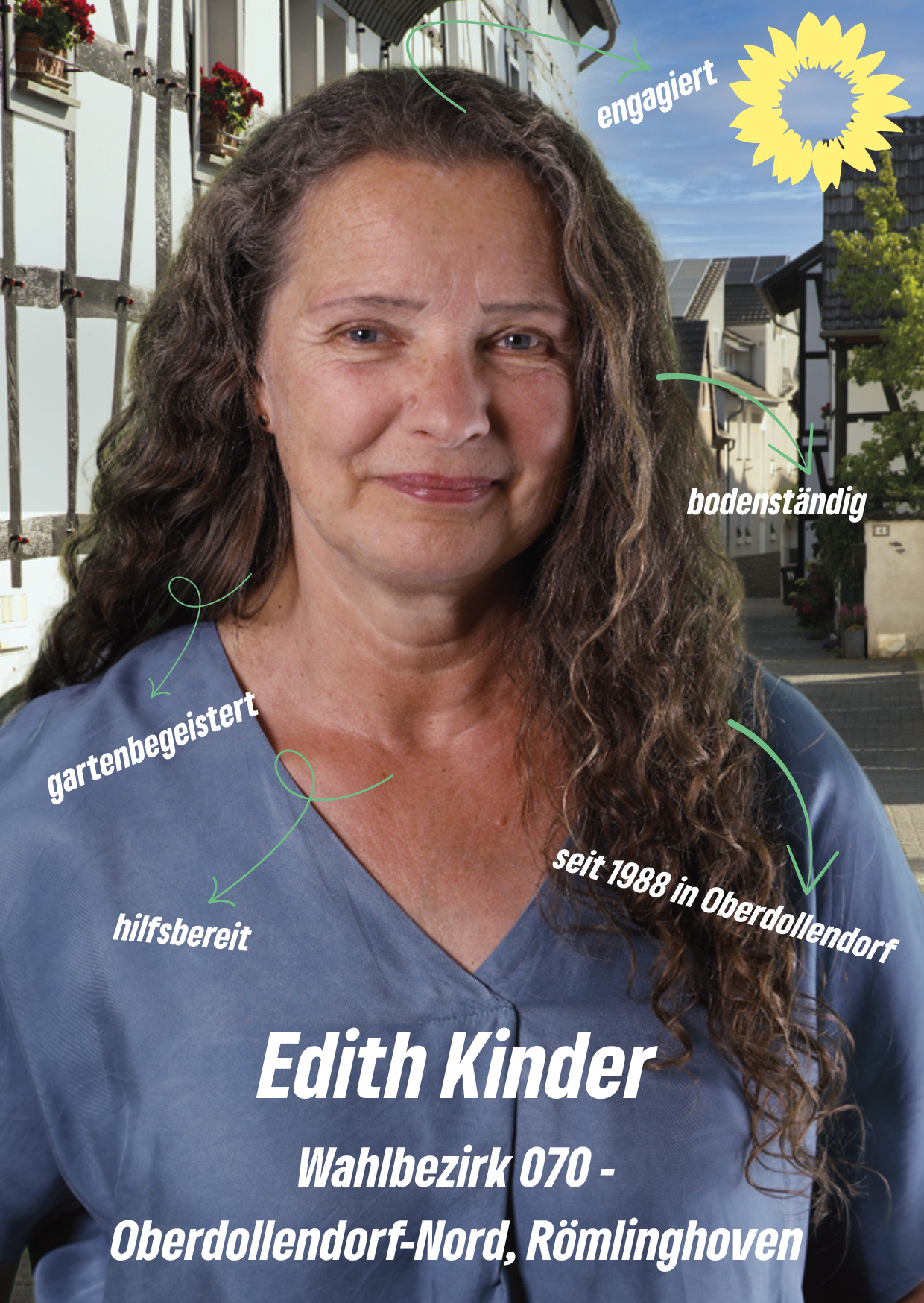 Direktkandidatin 2025 für den Wahlbezirk 70: Oberdd.-Nord-Römlingh. Kontakt: edith.kinder@gruene-koenigswinter.de. Nachbarschaft stärken – Umwelt mitdenken!
