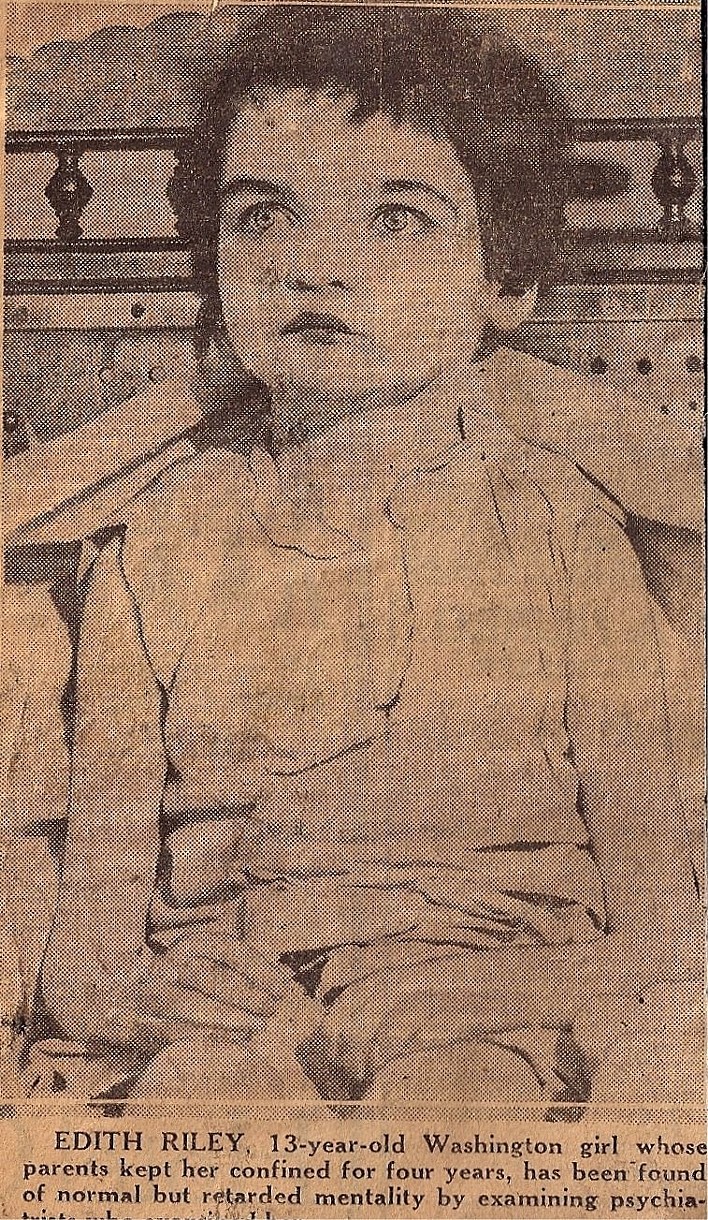 A little girl in Washington state named Edith Riley, who was rescued at the age of 13 from the dark closet in which her father and stepmother imprisoned her ...