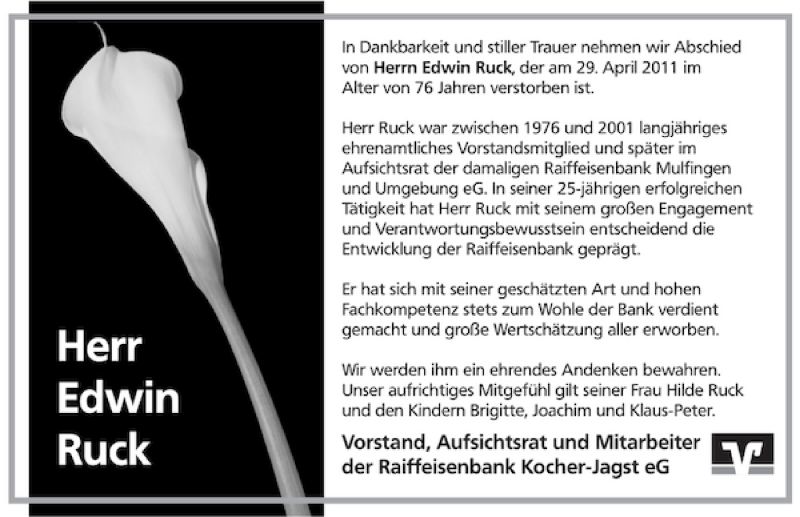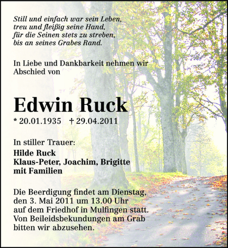 Edwin Ruck Obituary - Death Notice and Service Information