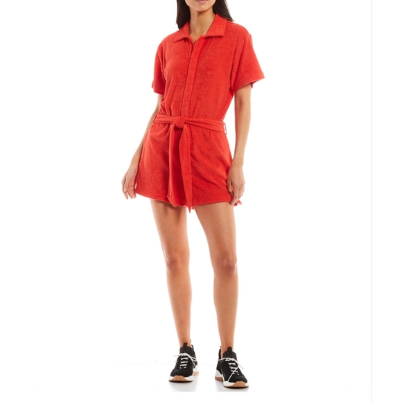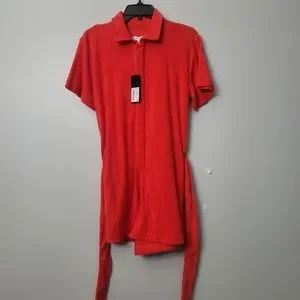 SORRY, THIS ITEM IS SOLD! · Gianni Bini Elisa Terry Cloth Point Collar Short Sleeve Tie Belt Flight Suit.