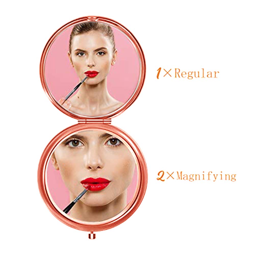 Regalos de cumpleaños 18 para ella, espejo compacto de oro rosa, 2.6 pulgadas de diámetro, aumento de 1x y 2x, perfecto para viajes y maquillaje · Cumpleaños 13.