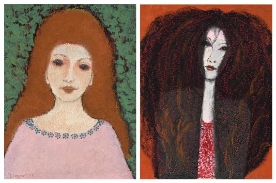 ELMER NEEDHAM, Folk Women, oil on board, 33.5 x 26.5 x 5 cm ...