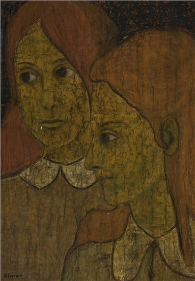 ELMER NEEDHAM Folk Women oil on board signed lower right. Dimensions: 33.5 x 26.5 x 5 cm. (13.1 x 10.4 x 1.9 in.) Artist Name: ELMER NEEDHAM ...