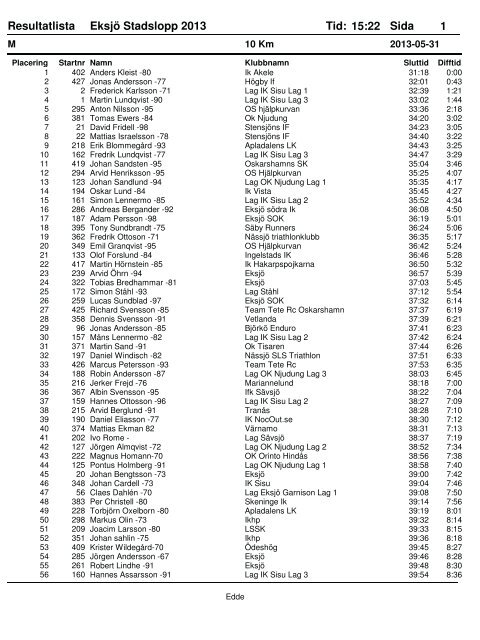 Elsa Titus / Emelie Svahn, 10, 3.6, 35.5. 4, Eva Sjöstrand / Sara Egmyr, 10, 3.4, 33.5. 5, Sara Blanc / Lina Hagström, 10, 1.7, 17.0. 6, Camilla Carlsson / Nina ...