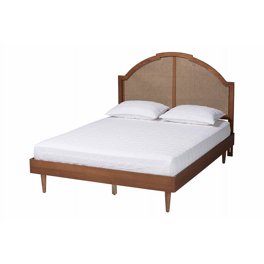 Baxton Studio Elston King Platform Bed with Woven Headboard & Turned Legs, Ash Walnut. Choose from available sizes ...