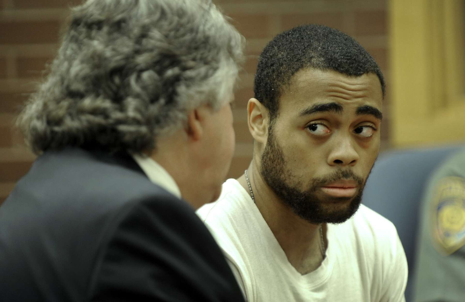 Emanuel Harris, charged with murder, represented by Attorney Dante Gallucci, appears in state Superior Court in Danbury Tuesday, Sept. 27, 2016, for the first day of jury …