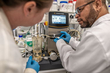 Cape Town, South Africa ... Scientist Emile Hendricks photographed in the quality control room at the Afrigen Biologics facility. Date. 11/2021. Part of story.