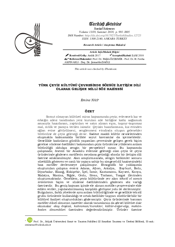 Handicrafts Motifs' Reflection in Folksay in Konya Region · Emine Nas · Journal of Turkish Studies 7:1619-1633 (2012). @article{Nas2012-NASHMR, author = {Emine ...