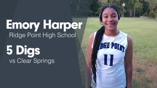 Check out Emory Harper's high school sports timeline including updates while playing volleyball at Ridge Point High School (Missouri City, TX).