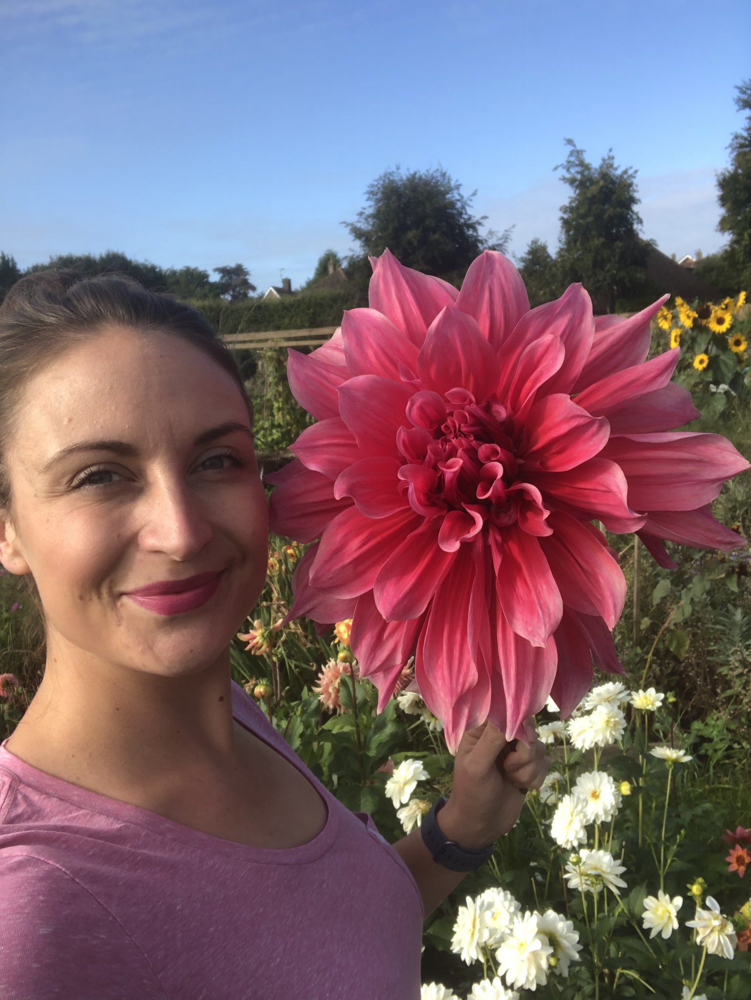 Emory Paul Dinnerplate Dahlia is the largest flowering Dahlia I know of, with whopping 12-14" flowers in brilliant deep pink with light pink edges.