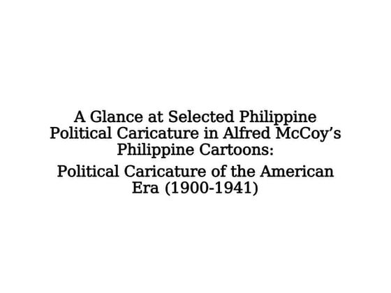 American Era: McCoy and. Roses This document explores the political caricature of the American era, focusing on the works of Alfred McCoy and Alfredo Roses ...