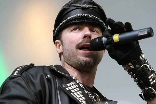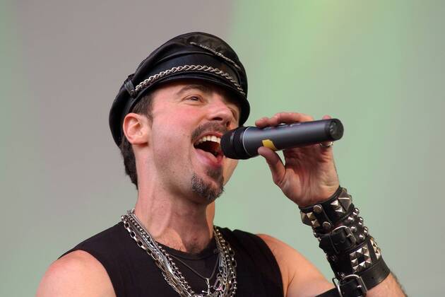 Eric Anzalone of US band Village People performs during the music festival Benatska noc in Vesec areal in Liberec, Czech Republic, on Friday, July 24, 2015.