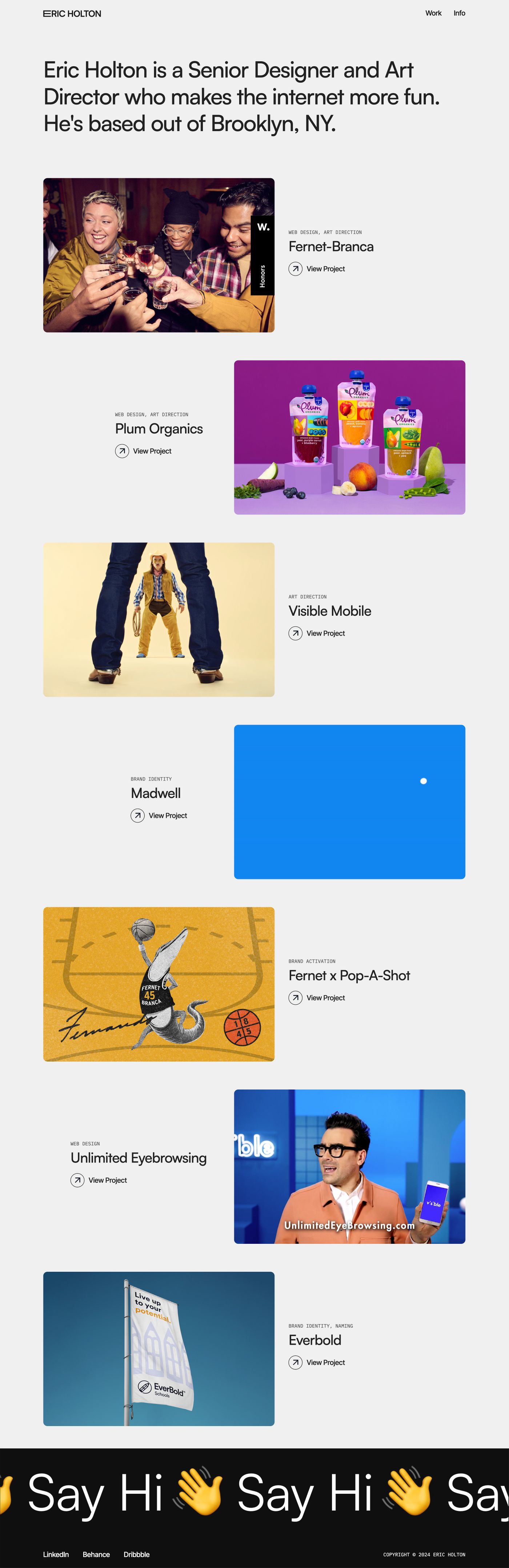 Eric Holton is a Senior Designer and Art Director based in New York City. He specializes in brand identity, web design, and art direction.