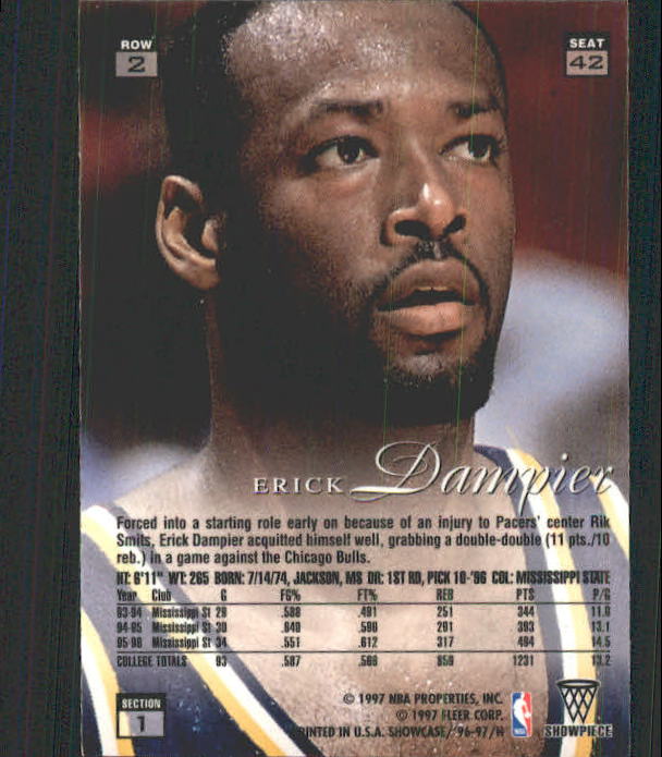 Erick Dampier. Position: Center. 6-11, 265lb (211cm, 120kg). School: Mississippi State (Men). Draft: Indiana Pacers, 1st round (10th pick, 10th overall), ...