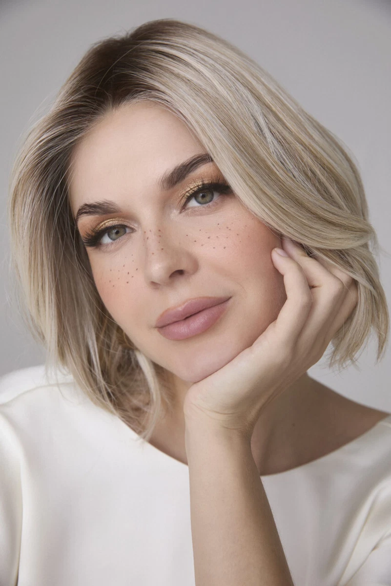 The double monofilament two layer top and special weaving technique offers unparalleled comfort whilst providing a natural look. Erin by Amore Wigs is a sleek, shapely and utterly natural looking bob with beveled fullness throughout nape and sides.