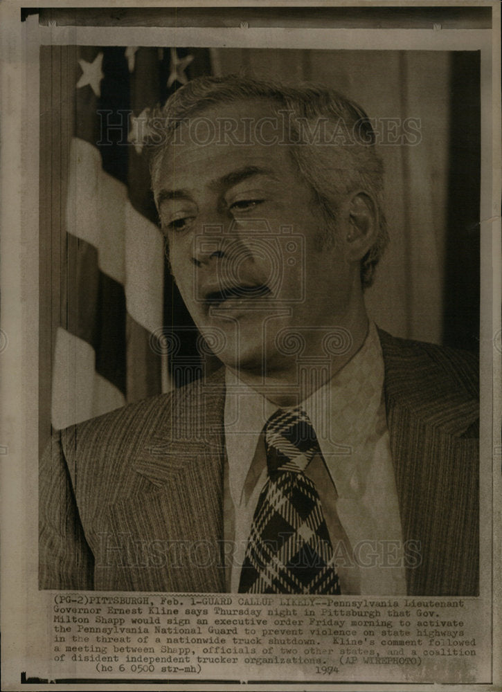 Ernest Kline ; 25th Lieutenant Governor of Pennsylvania ; Governor, Milton Shapp ; Preceded by, Raymond Broderick ; Succeeded by, William Scranton III.
