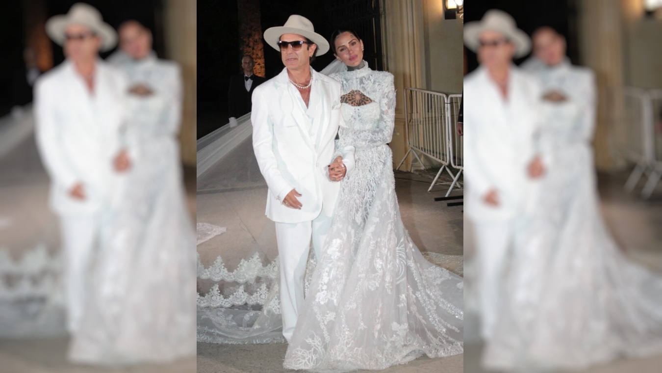 Vestido blanco, doble cola catedral y botas: las fotos del look de ...