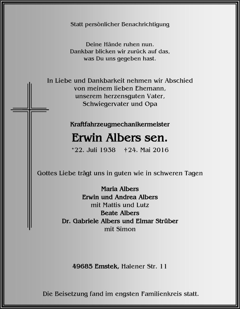 Search Erwin Albers Obituaries and Funeral Services - Legacy.com