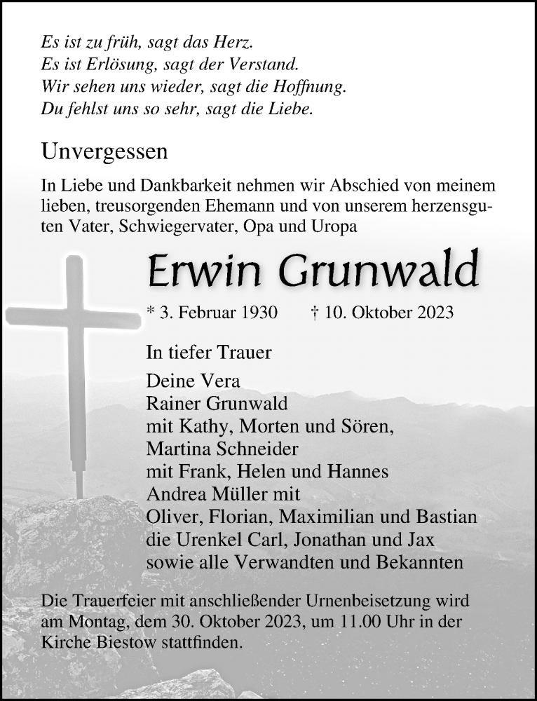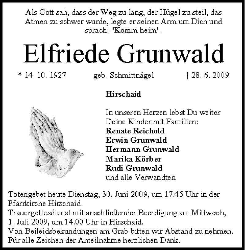 ... Gertrud Grunwald. 1924–2006. Hans Grunwald. 1927–. Christa Grunwald. 1929–2020. Sources (1). Erwin Grunwald, "Find a Grave Index". View All. Spouse and Children.