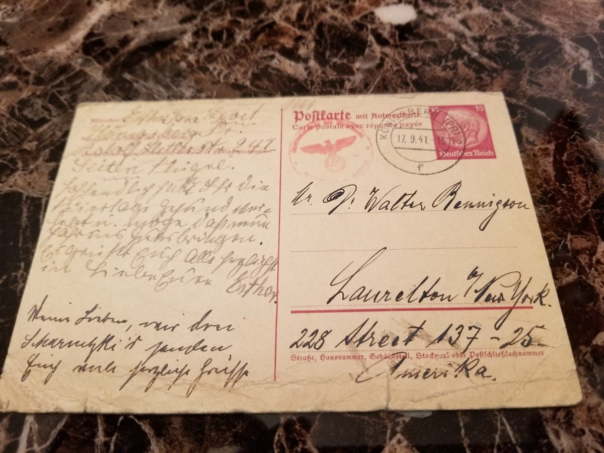 1941 Konigsberg Germany to New York USA Postcard Cover Judaica Esther Levit ; Quantity. 1 available ; Item number. 134926897371 ; Quality. Used ; Place of Origin.