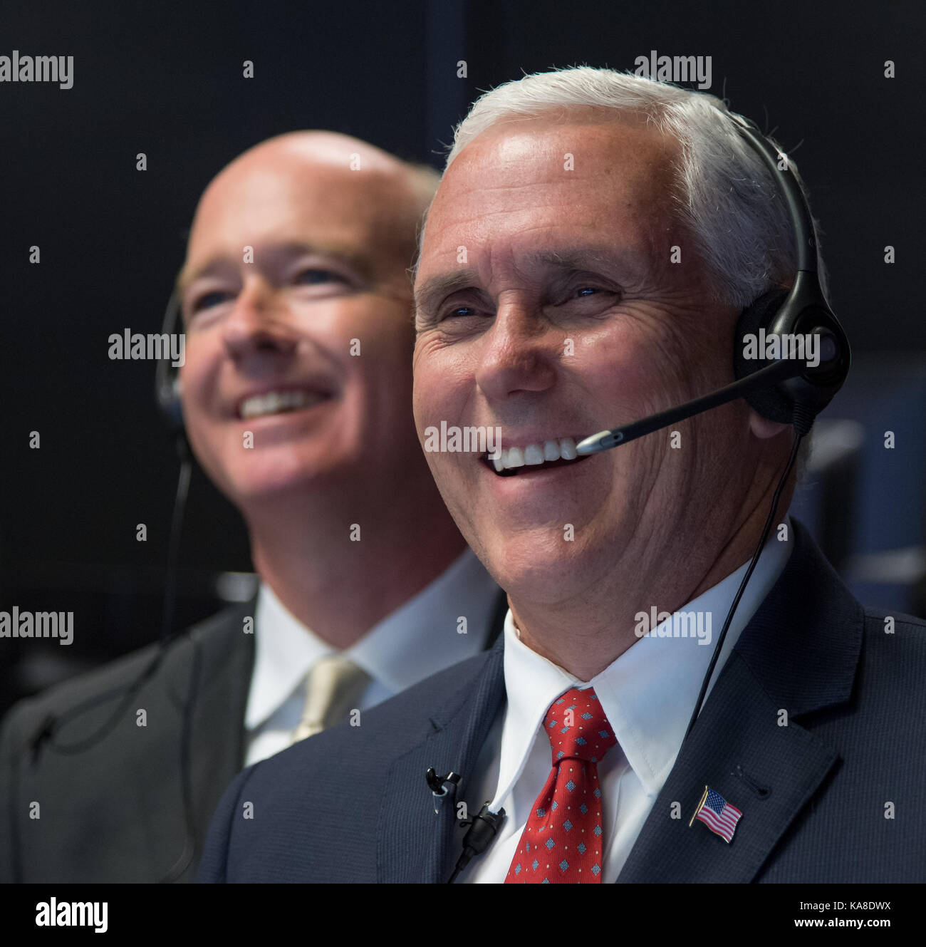 Mike Gilday (from left) speaks with Naval Undersea Warfare Center Headquarters Director of Undersea Warfare Eugene Hackney Jr. as Christopher DelMastro, head, ...