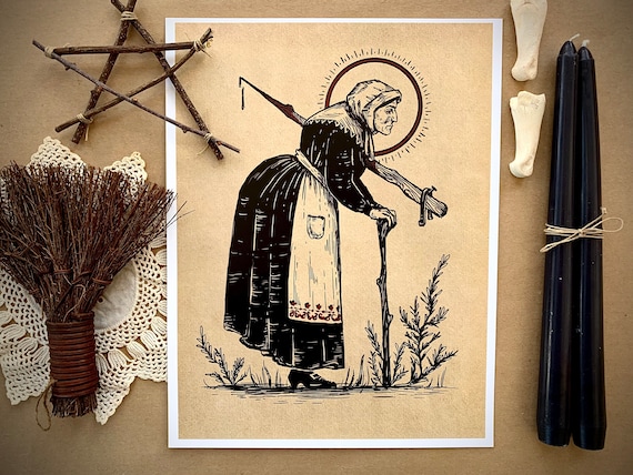 From the Witches of New England series of illustrations, Eunice Cole serial convicted witch of Hampton, New Hampshire. 8.5x11 Print