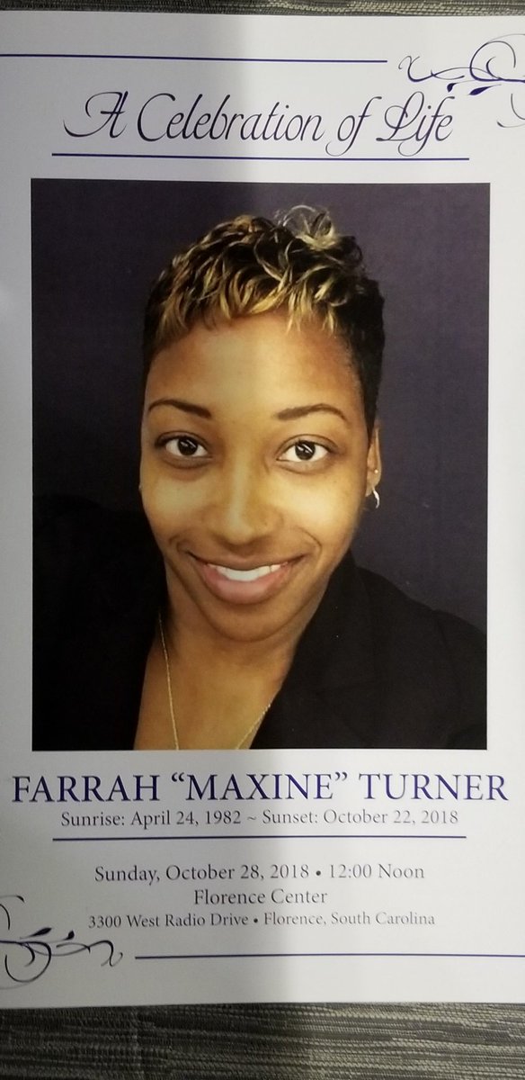 Florence County Investigator Farrah Turner passed away three weeks later, and her funeral was on October 28, 2018. Florence Police Officers ...