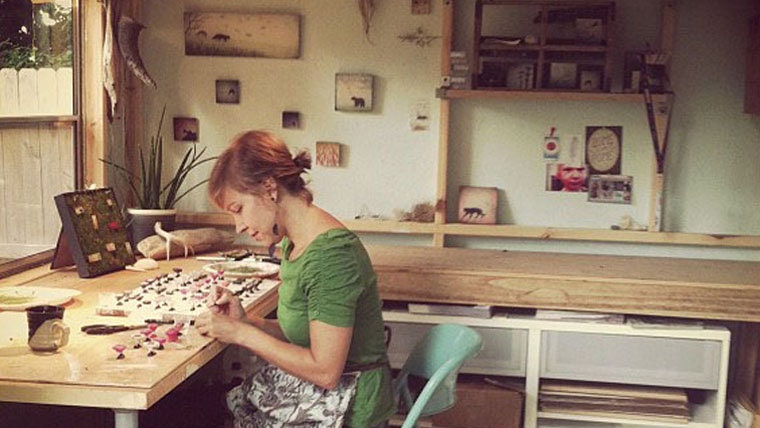 Faryn Davis of Fernworks creates tiny, intricate worlds in resin. She blends miniature painted scenes and found specimens such as real grass, lichen, feathers, ...