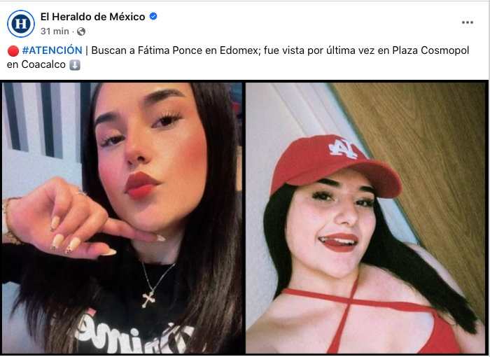 Buscan a Fatima Ponce en Edomex, fue vista por última vez en ...