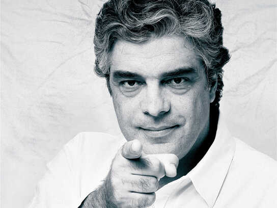 Title: Professor Felix Padilla, a professor from the Department of Sociology ; Description: Padilla is holding the book, "The Gang as an American Enterprise."