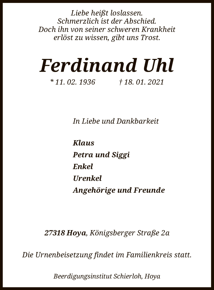 Results for "Ferdinand Uhl". 1 - 25 of 31 Records. Ferdinand Uhl. Birth: 20 Aug 1908 United States. Death: 19 Apr 1990. Father: Otto Uhl.