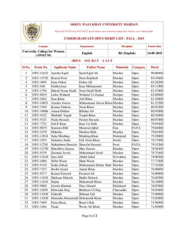 (DOC) St Merit List UCW English - Academia.edu