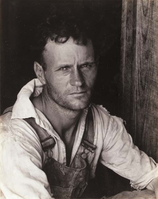 A photograph by Walker Evans of Alabama tenant farmer Floyd Burroughs from Let Us Now Praise Famous Men. The book, written by James Agee, details his and ...