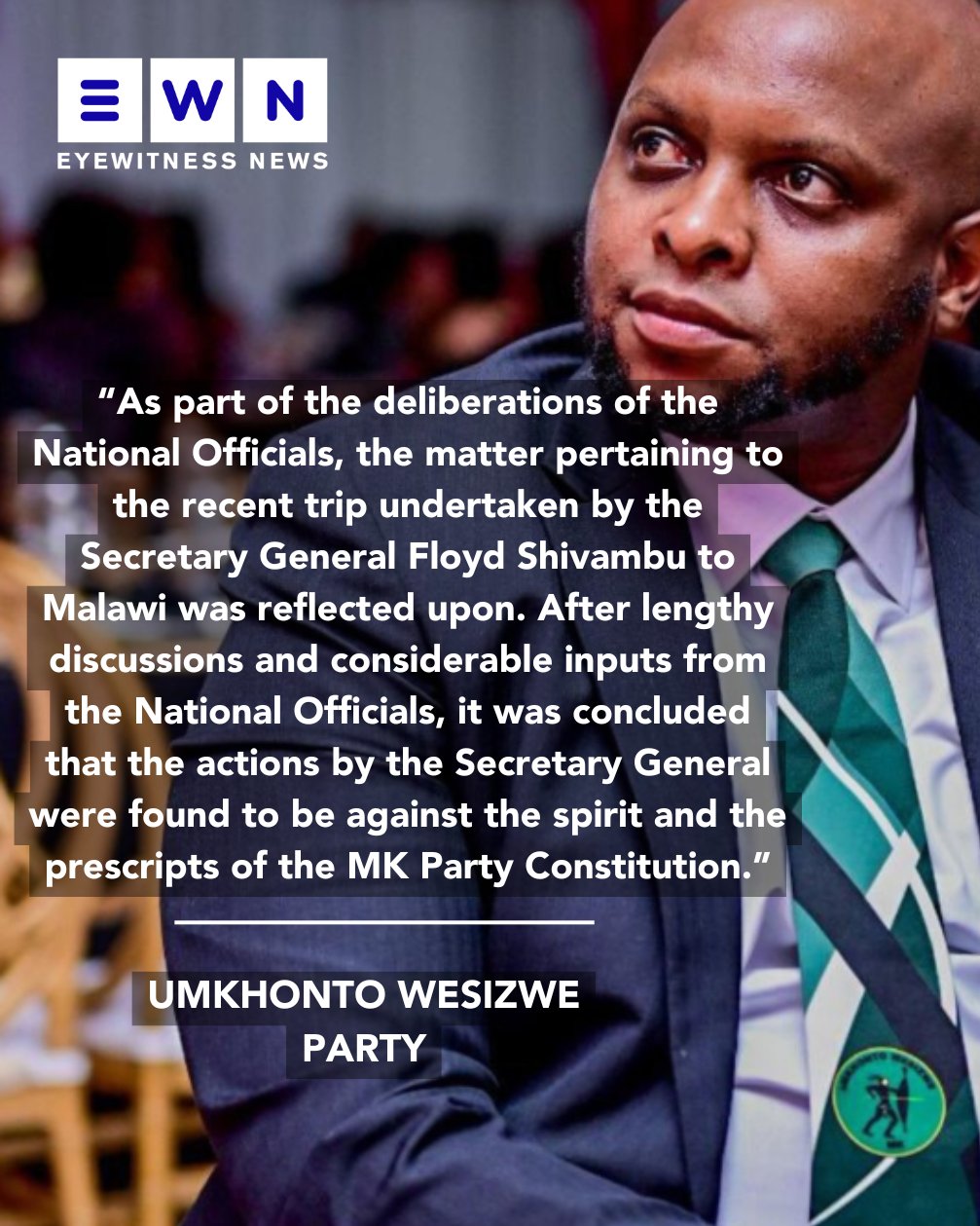 uMkhonto Wesizwe Party (MKP) removes Floyd Shivambu as Secretary General