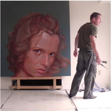 Forrest Moses works on new abstract landscape canvases in his Palm Springs studio.