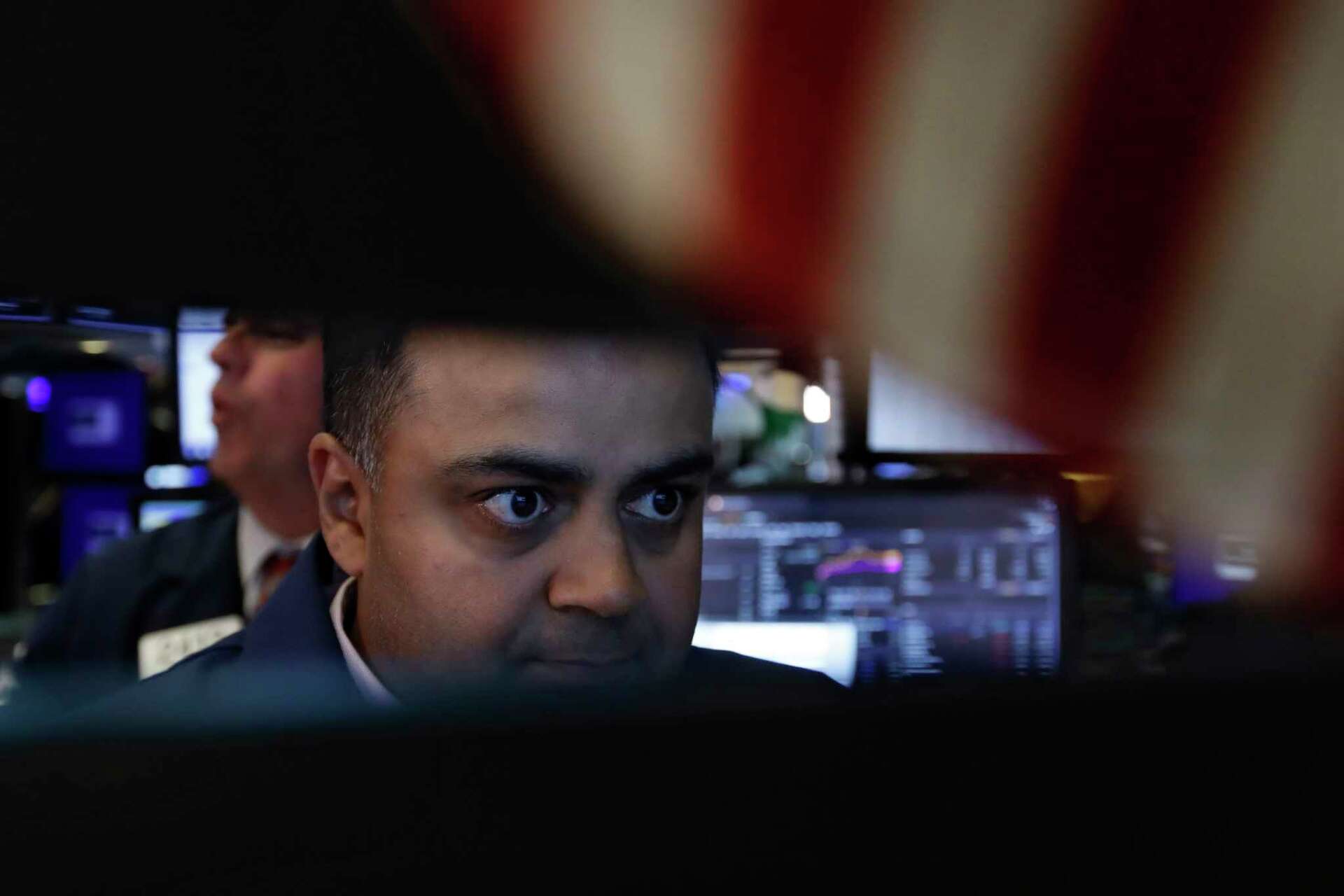 Trader Fred Demarco, right, works on the floor of the New York Stock ...