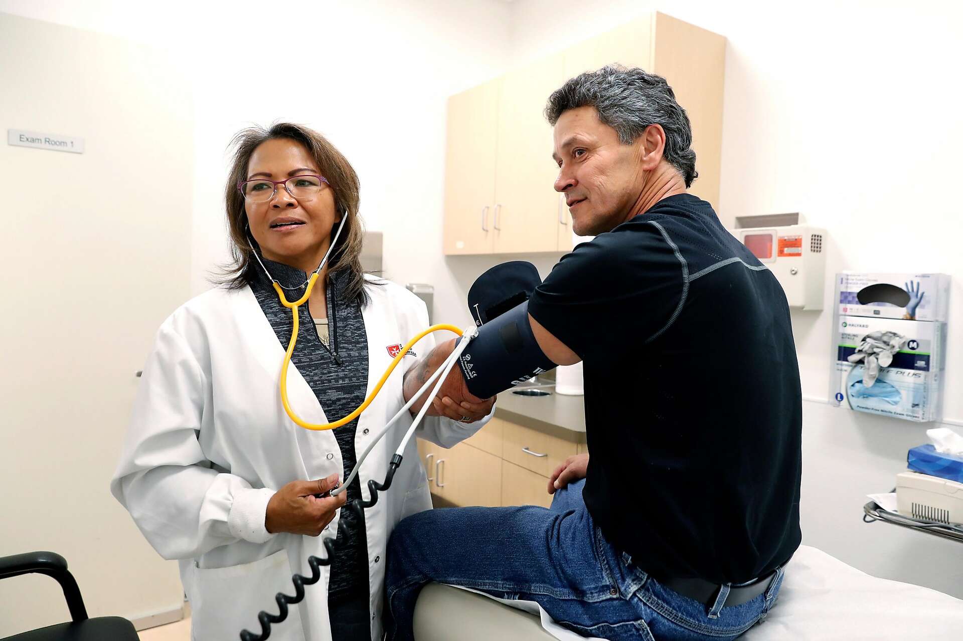Fred Pons with nurse supervisor Maria Gamulo-Owen on Tues. Oct ...