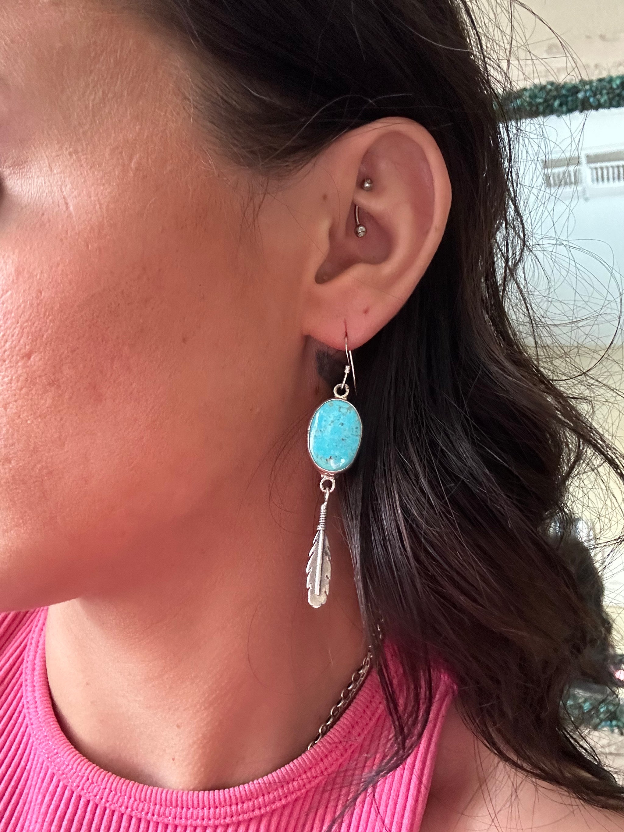 Navajo Handcrafted Larimar Errings; Artist Freda Martinez