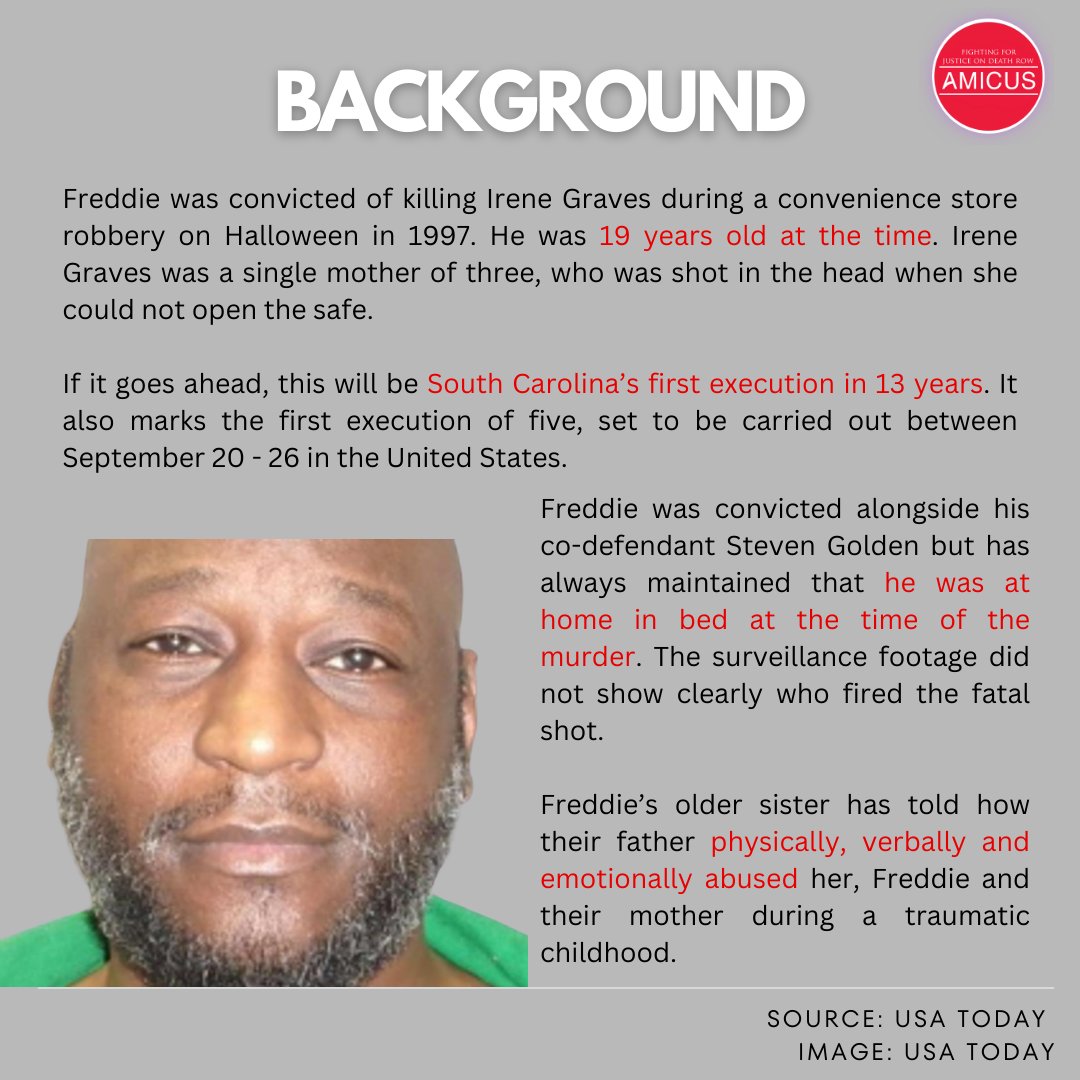 Freddie Owens is scheduled for execution in South Carolina on September 20, 2024 for the 1997 murder of Irene Graves.