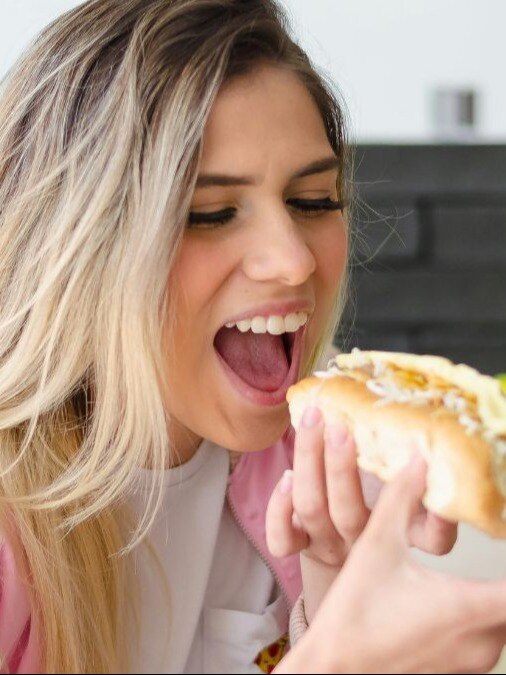 Person holding bread with vegetable salad photo - Unsplash