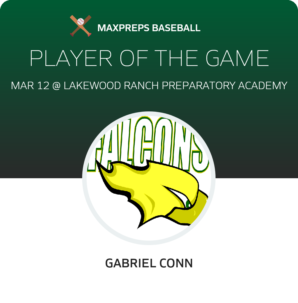 Gabe Conn, Saint Stephen's, Junior. 2025-03-02 -. Jonathan Maassen, Parrish Community, Senior. The Florida Gulf Coast University commit hit .215 in 31 games ...