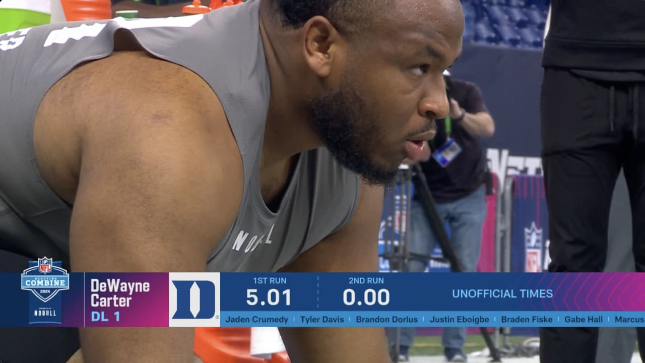 Baylor Bears defensive end Gabe Hall runs an official time of 5.03 seconds in the 40-yard dash at the 2024 NFL Scouting Combine.