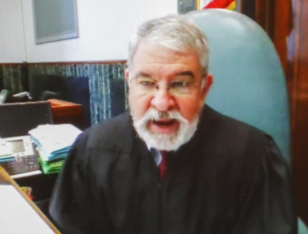 Robert Gary Given, right, during his initial appearance on three felony charges before Harrison Magistrate Kevin Renzelli.