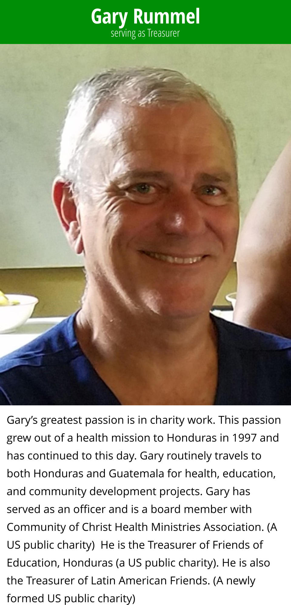 Gary Rummel Gary's greatest passion is in charity work. This passion grew out of a Susan M. Carter-Lorenzana My connection to Guatemala and Latin America ...