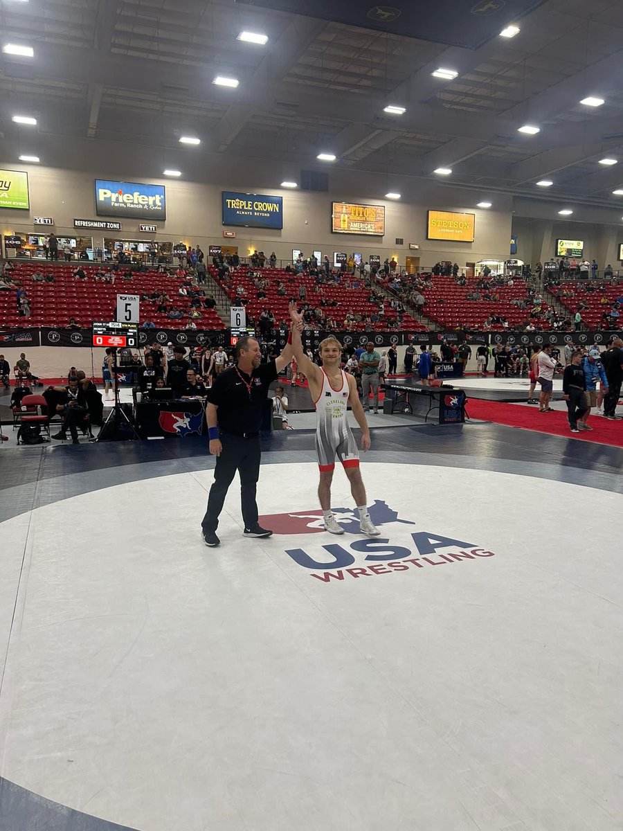 77 kg Semifinal - Gavin Ricketts, Union County High School Wrestling vs Bradley Gillum, Southern Illinois Regional Training Center. May 31, 2024.