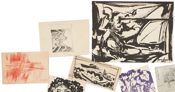 58 Artworks · 6 Large George Cress Drawings Incl. Abstract, Portraits, and Landscapes,1976 · 56 George Cress Watercolor Paintings & Drawings.